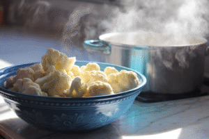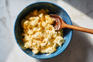 - Steam or microwave cauliflower florets until tender but not mushy, about 5–7 minutes. Drain well and set aside.