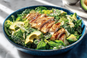 Whenever I need something light but satisfying, this salad is my go-to. The grilled chicken gives you that smoky, warm bite, and the avocado adds a creamy texture that makes it feel like comfort food. It’s the perfect mix of fresh greens and hearty protein — ideal for lunch breaks, meal prep, or even a quick dinner after a long day.