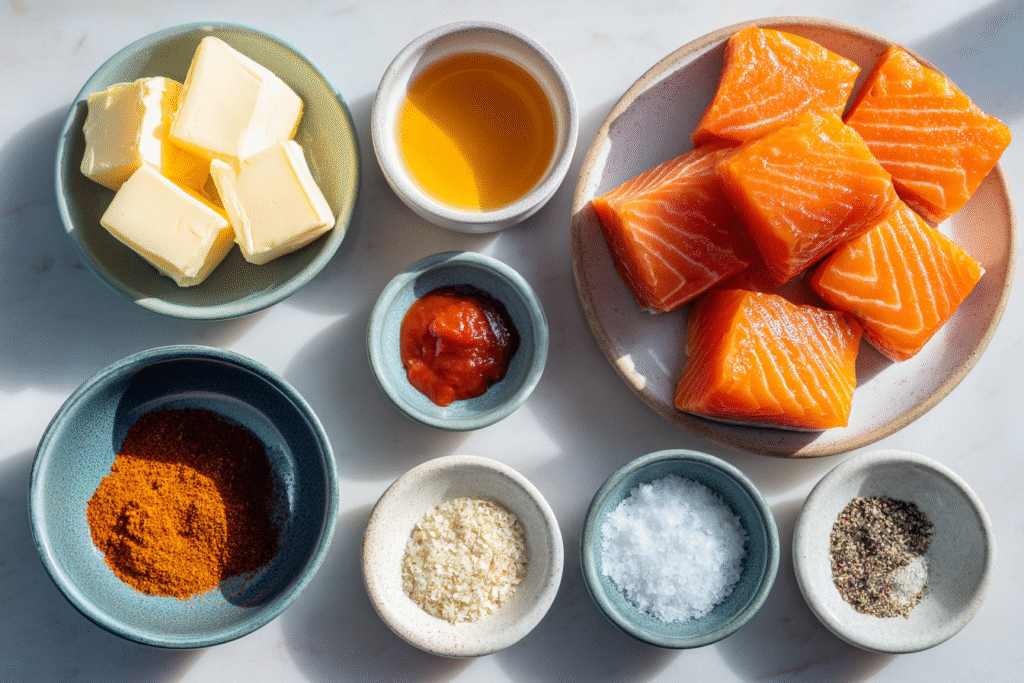Salmon is naturally rich and tender, which makes it perfect for quick cooking. It soaks up the butter and spices almost instantly. The smoked paprika adds a warm, deep flavor that balances the sweetness from the honey substitute. Garlic powder ties everything together in that familiar, comforting way. And the hot sauce brings just enough heat to wake the dish up without overpowering it. When all of these ingredients melt together in the pan, you get a sauce that clings to every bite.