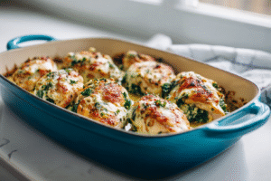 This Kale and Feta Stuffed Chicken is one of those dishes that feels restaurant-quality but takes less than an hour to make. Juicy chicken breasts are filled with a creamy, garlicky blend of kale, feta, and herbs, then baked until tender and golden. The result? A high-protein, low-carb meal that delivers big on flavor without feeling heavy. It’s elegant enough for guests but easy enough for a weeknight dinner.