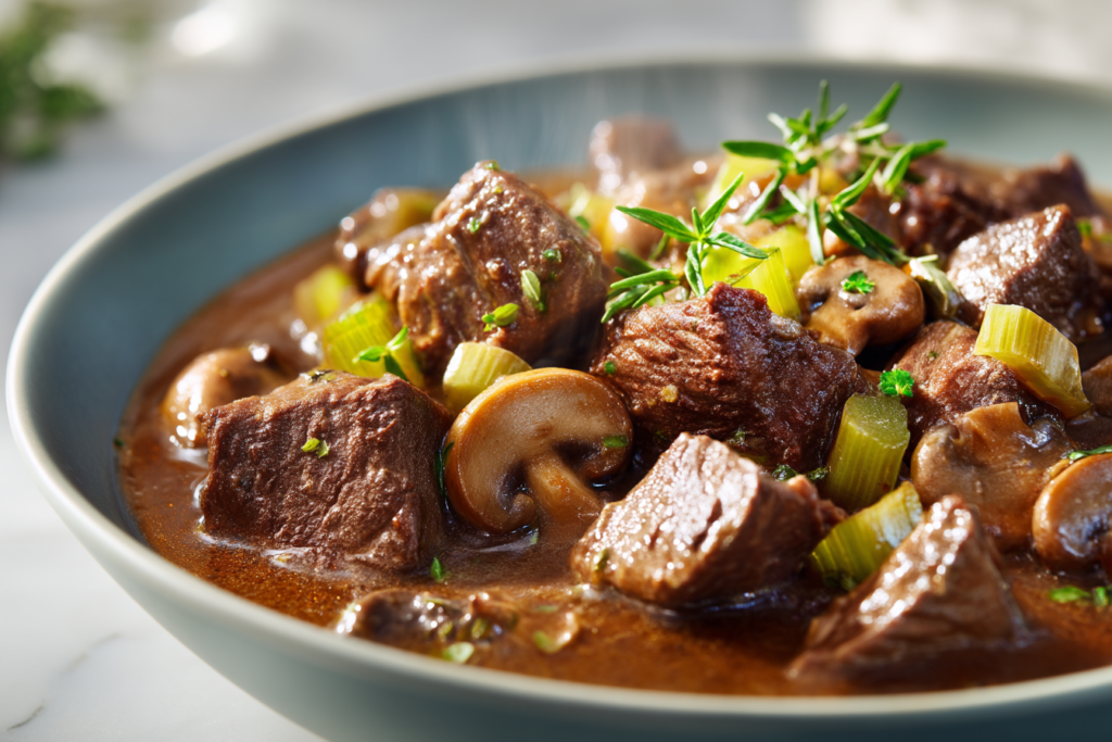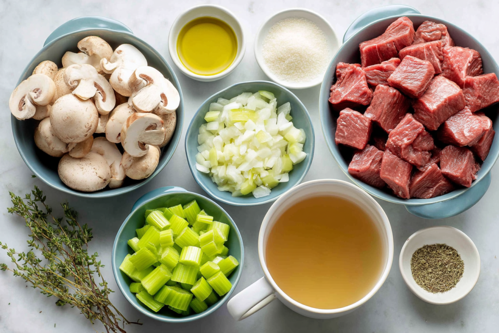 The beef gets its richness from browning in the pot before anything else goes in. The onions, garlic, and thyme soften into the broth and help build that classic stew smell. Mushrooms bring earthiness, and the celery adds a little snap without changing the low-carb balance. The xanthan gum thickens it just enough to feel like the old-fashioned version you might remember, only this one stays completely keto-friendly. Every ingredient plays a small role, and together they make something warm and familiar.