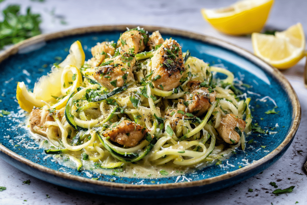 There’s something satisfying about twirling these “zoodles” through a buttery sauce that tastes like something you’d get at a café. The first time I made this, I was blown away by how flavorful it was — the garlic butter soaks into the chicken and noodles, creating that creamy coating that makes every bite count. It’s a dish that feels indulgent but still light enough to keep you energized.