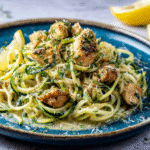 This Zucchini Noodles with Garlic Butter Chicken recipe is everything you love about comfort food — without the carbs weighing you down. Tender chicken pieces are coated in golden garlic butter, tossed with silky zucchini noodles, and finished with a squeeze of lemon and a sprinkle of Parmesan. It’s the perfect balance of rich and refreshing, and it comes together in under 35 minutes for a weeknight win.